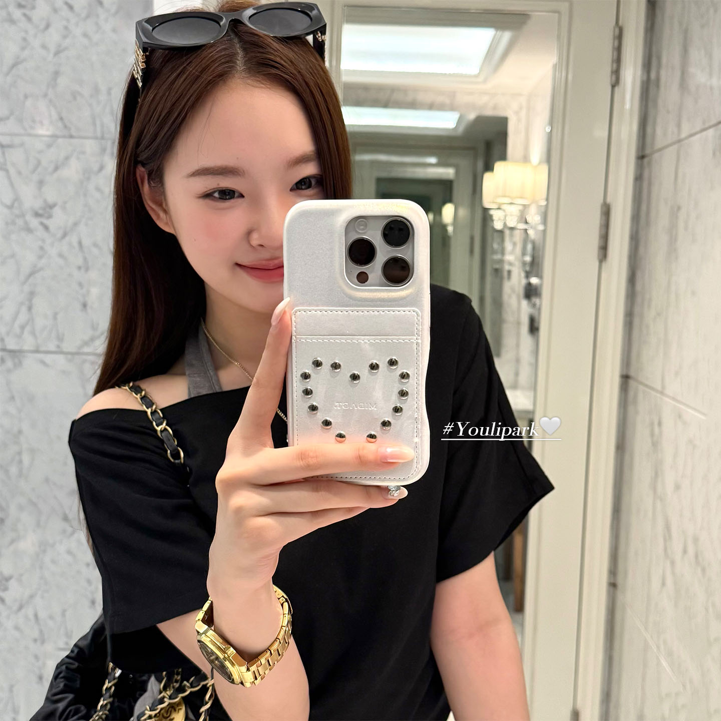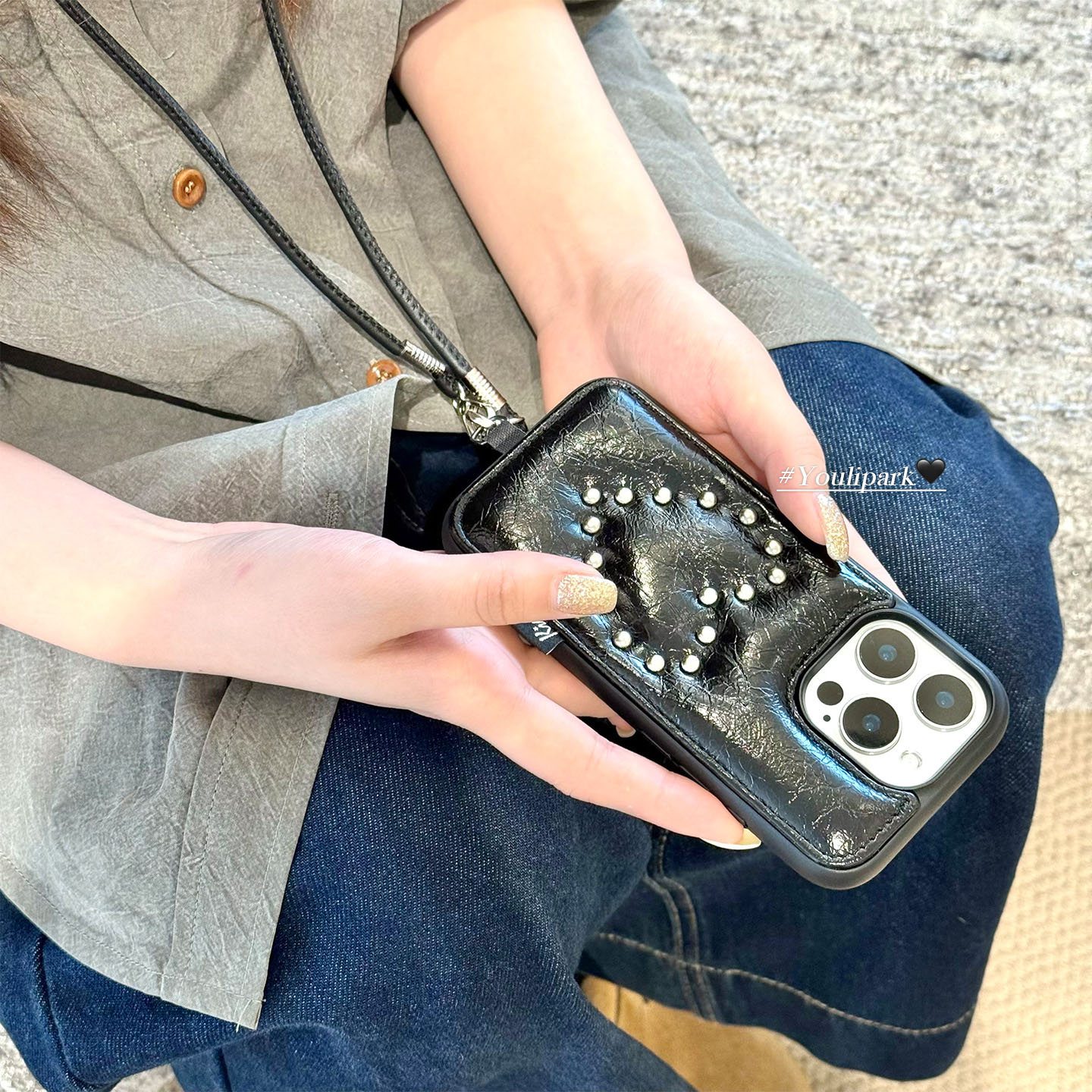 甜酷皮质铆钉星星斜挎苹果手机壳