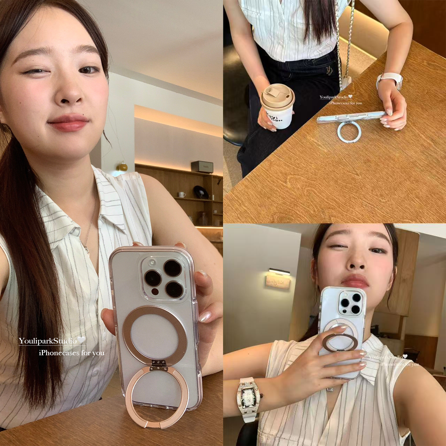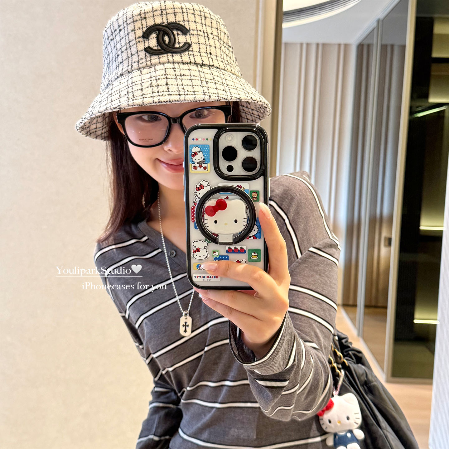 蝴蝶结猫咪磁吸支架苹果手机壳女