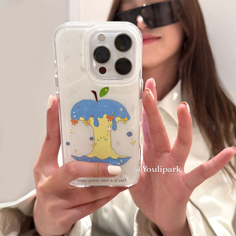 夏日海盐蓝苹果涂鸦苹果手机壳女