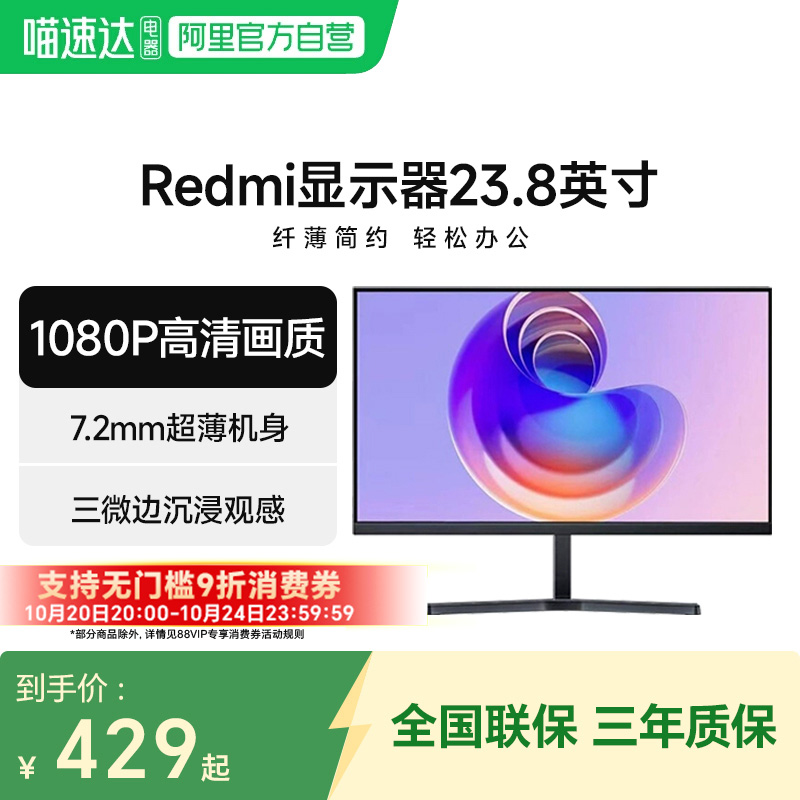 小米Redmi显示器23.8英寸 微边框视频办公高清学习游戏显示