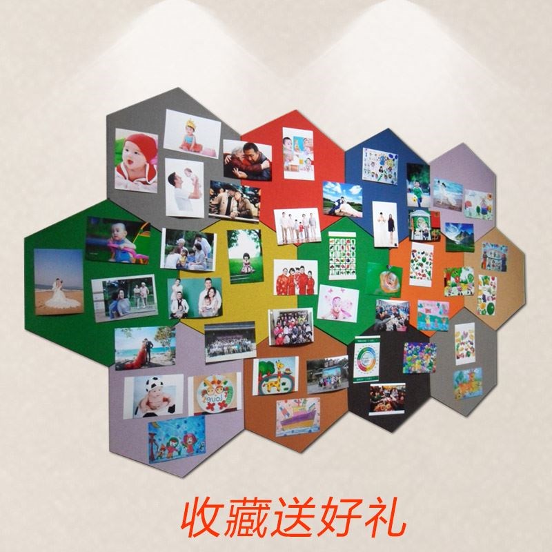 厂促带背胶软木板彩色六边形照片墙留言板公告栏幼儿园背景墙装品