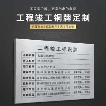 极速厂销厂促工程质量竣工标志标识牌不J锈钢牌工程腐蚀铜牌标牌