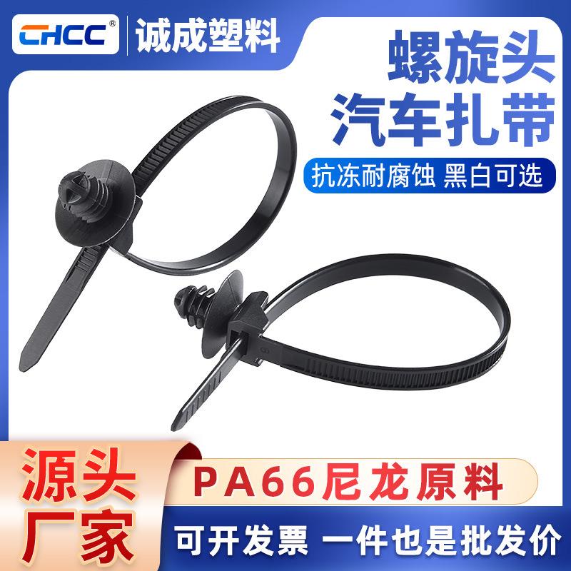 插销式螺旋头汽车卡扣扎带自锁式固定尼龙4.6杉树型塑料黑色轧带