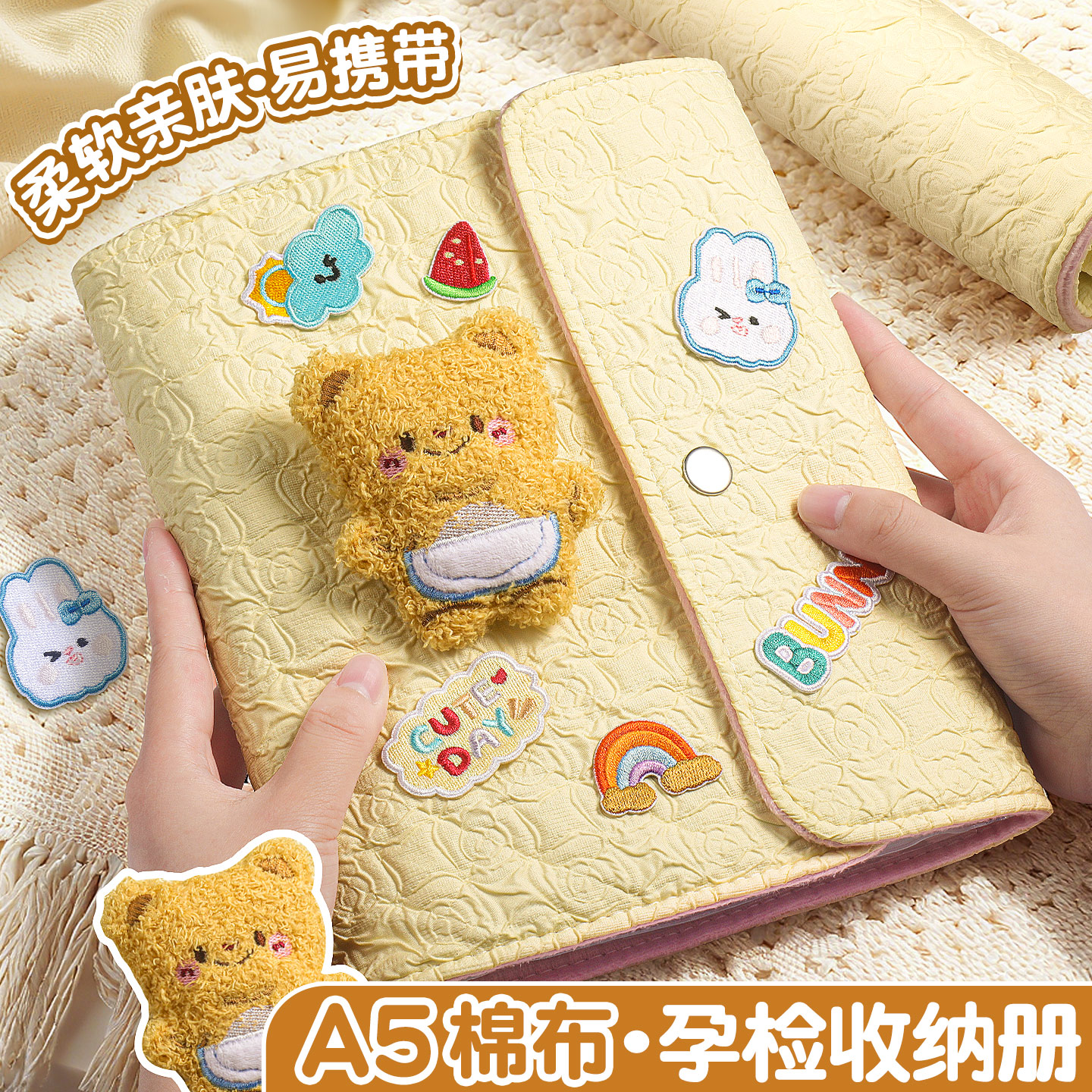 产检收纳册可折叠布艺孕检报告单收纳袋a4活页夹B超检查单怀孕资料