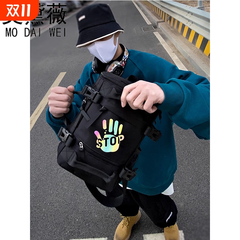 莫黛薇男生斜挎包日系大容量胸包机能工装单肩包小众骑行小背包潮