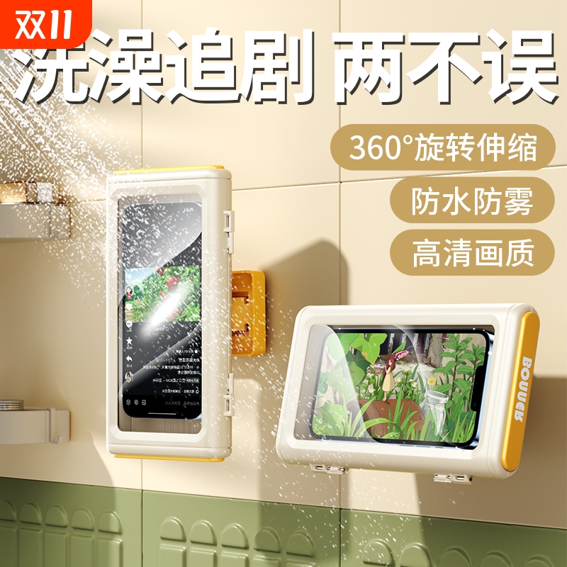 浴室手机架防水盒洗澡看电视追剧神器放玩懒人支架可拆卸旋转伸缩免打