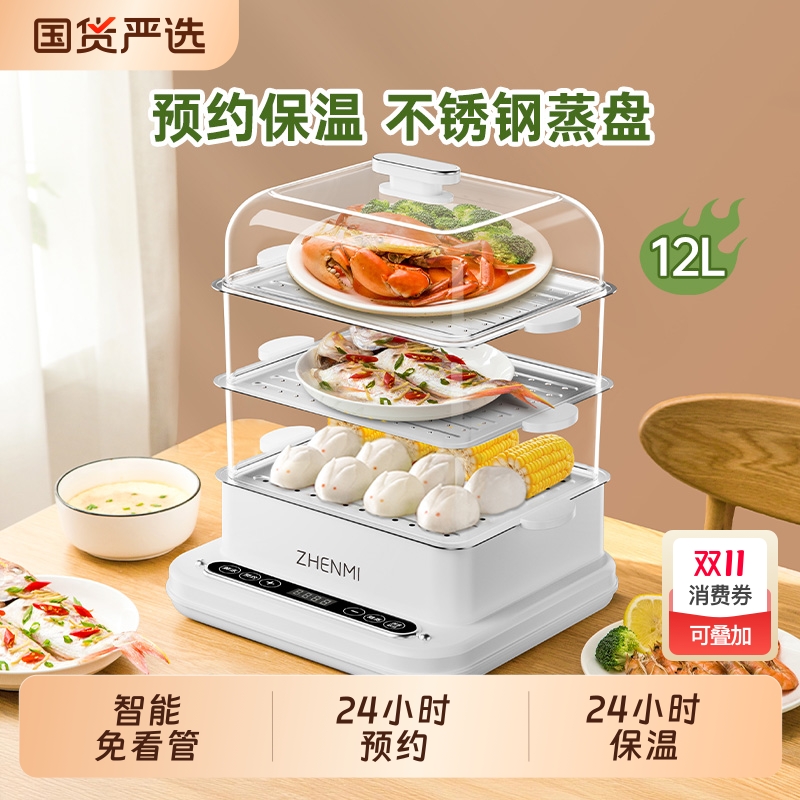 臻米电蒸锅多功能家用三层2025新款蒸汽锅早餐机不锈钢预约定时