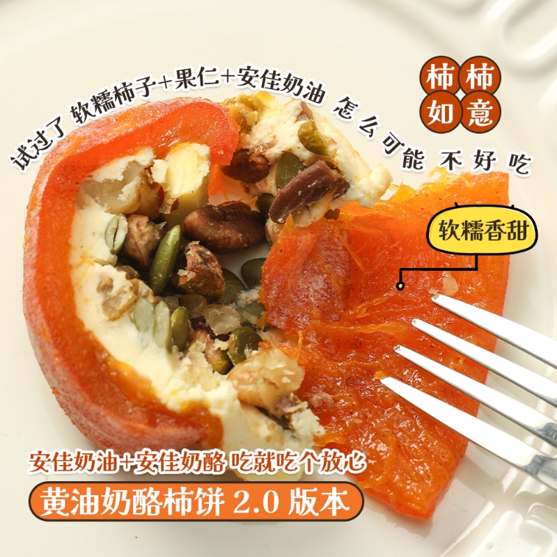 爆火坚果黄油奶酪柿饼400g六枚装私房高品质商用包邮柿子夹心盒装