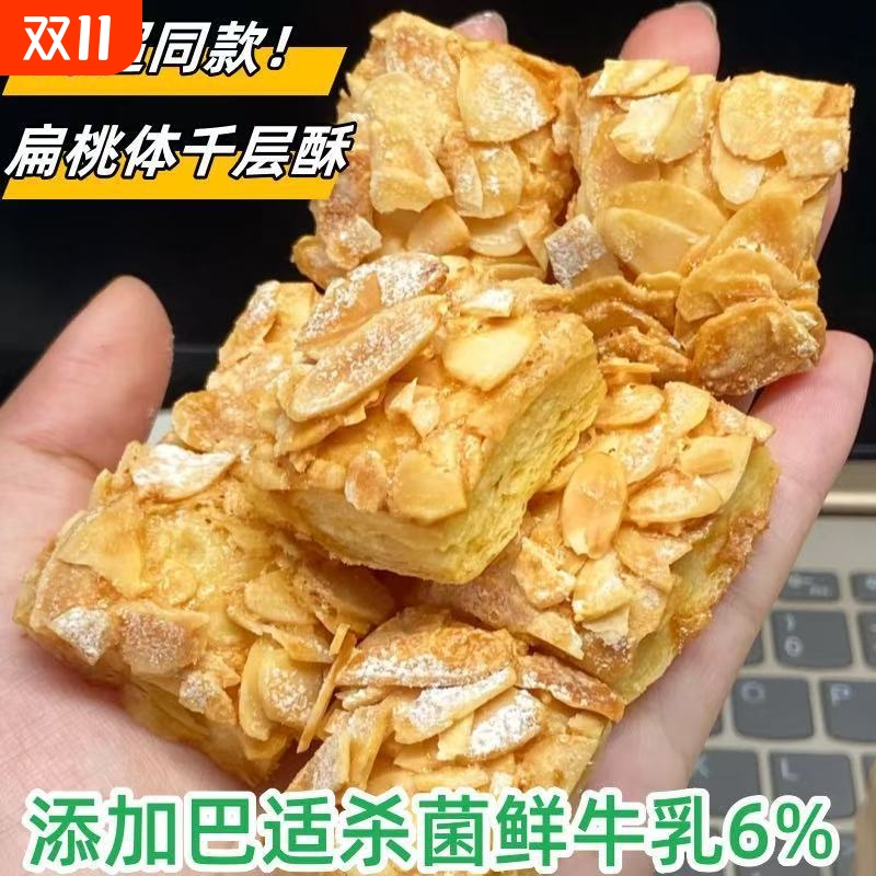 扁桃仁千层酥解馋休闲零食小吃下午茶糕点心追剧桃仁酥饼小块饼干