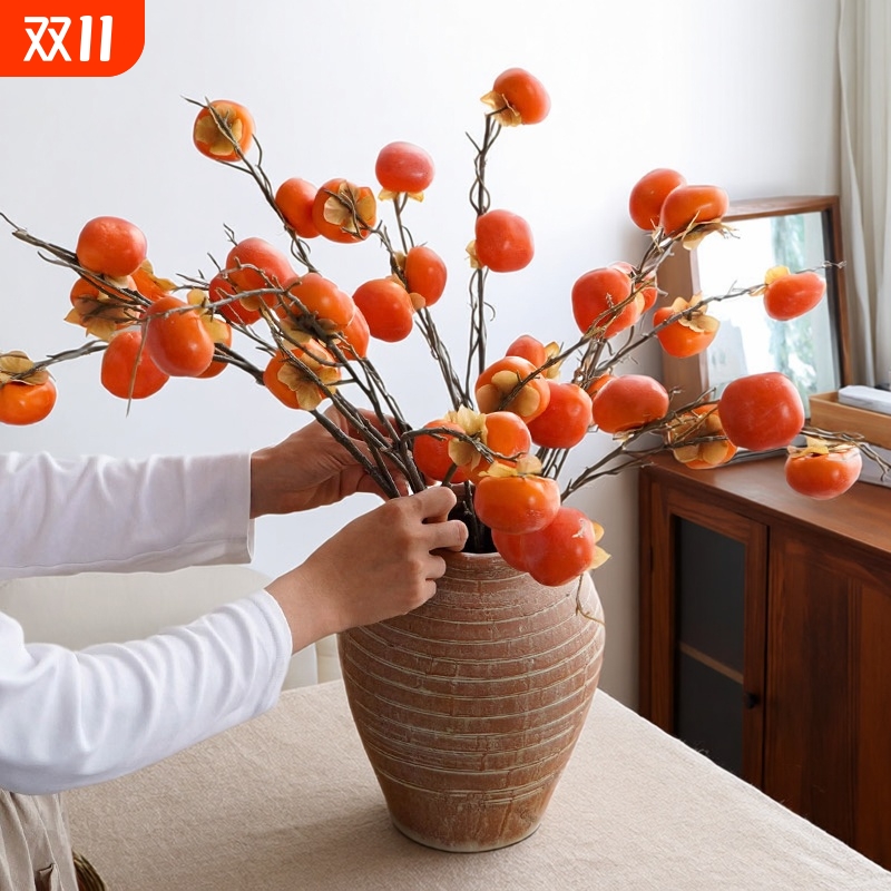 仿真花柿子橘子桔子水果摆件
