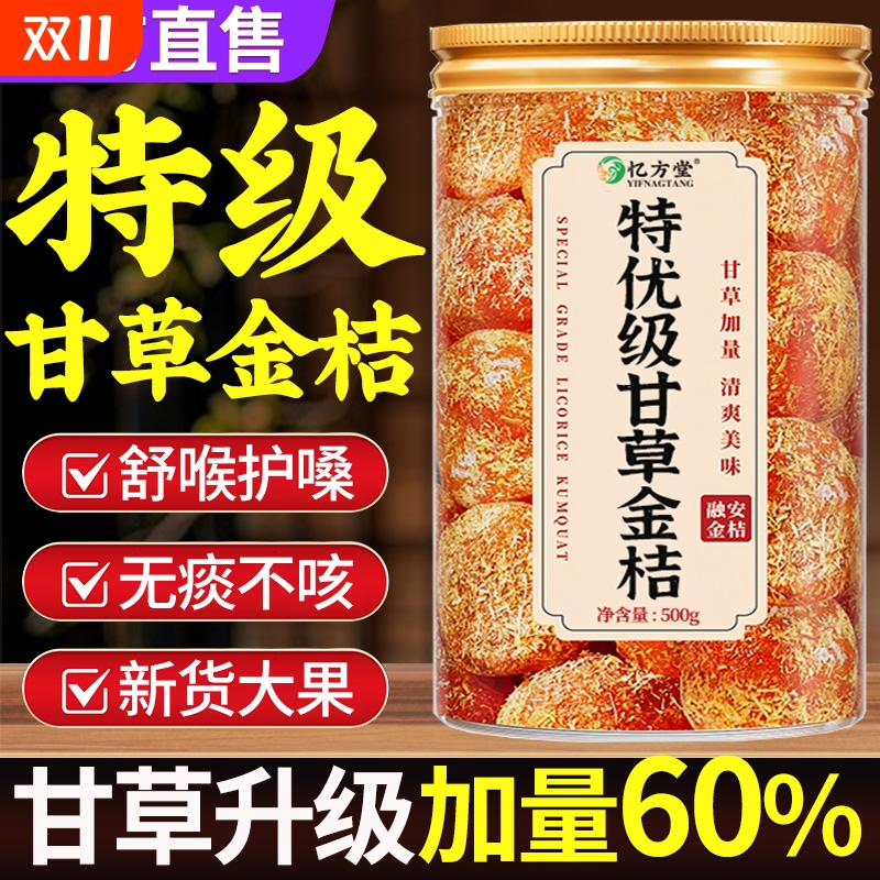 甘草金桔干官方冰糖正宗非特级化痰止咳干草金桔蜜饯泡水