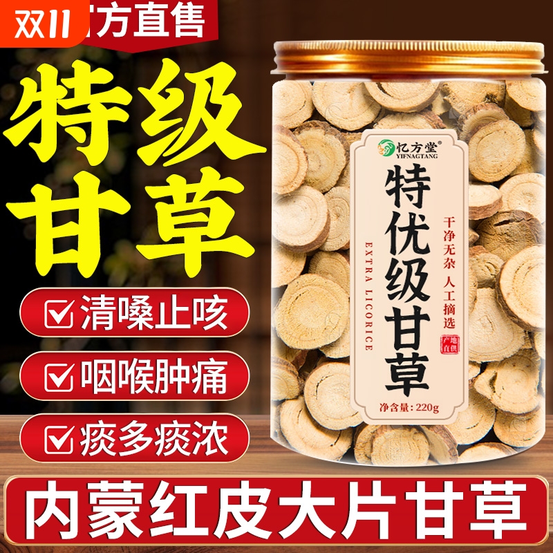 甘草中药材正品官方旗舰店泡水喝野生特级内蒙古干甘草片止咳菊花