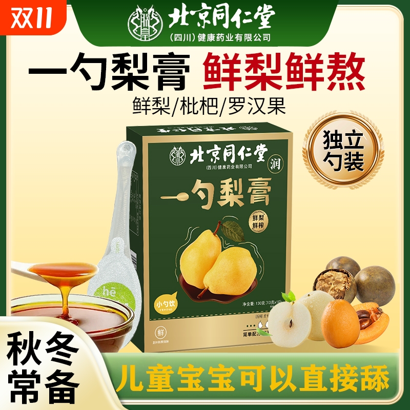 北京同仁堂枇杷秋梨膏儿童婴幼儿润肺止咳润喉无添加泡水纯雪梨膏
