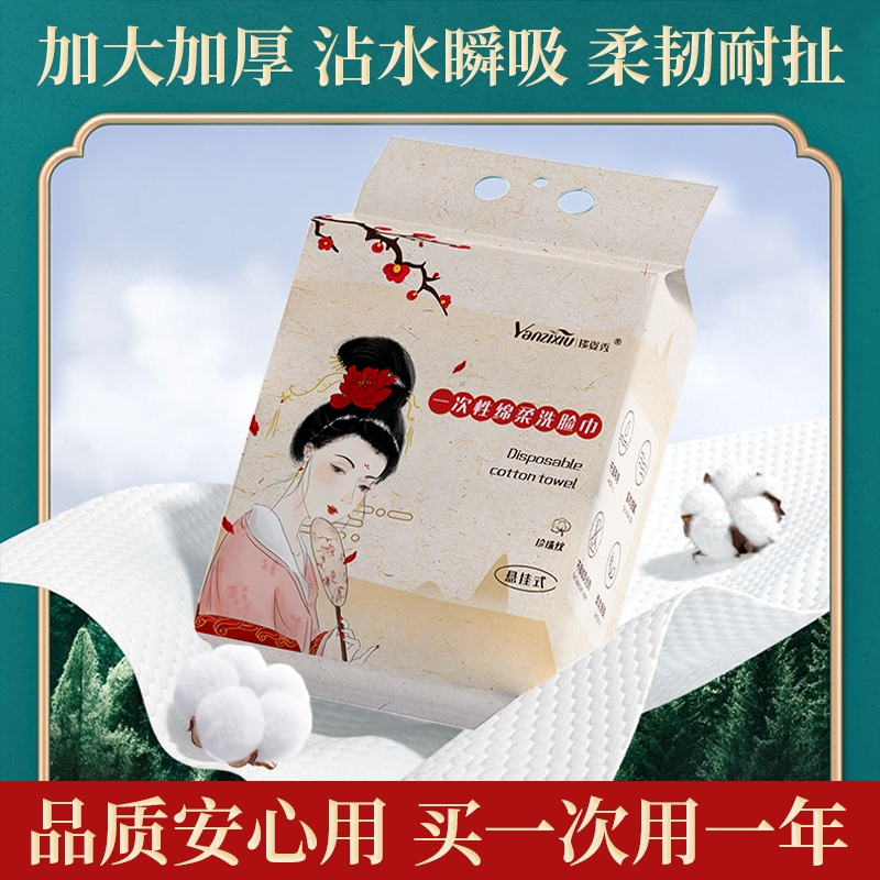 巨量装洗脸巾国潮加厚悬挂式一次性纯母婴绵柔擦脸洁面巾珍珠纹