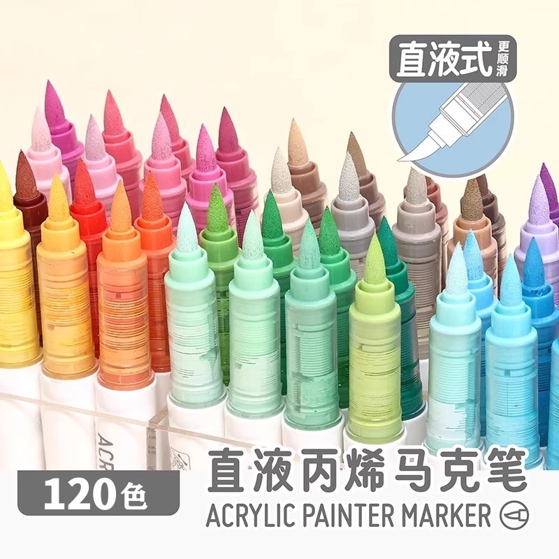 得力直液式丙烯马克笔小学生美术专用软头丙烯笔儿童无毒可水洗水彩笔