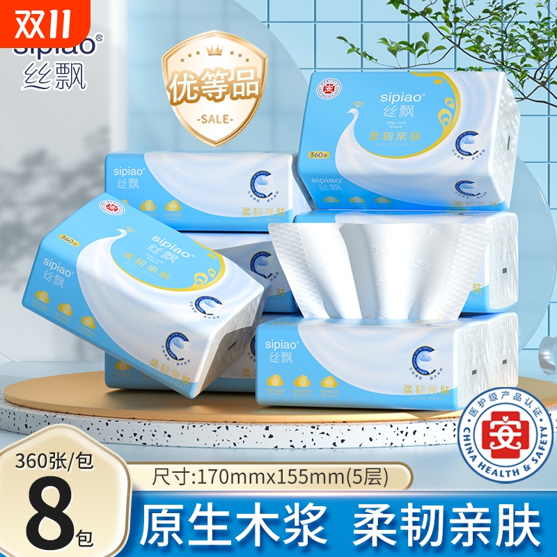 抽纸家用加厚可湿水实惠装餐巾纸面巾纸可擦手医护级五层原生木浆