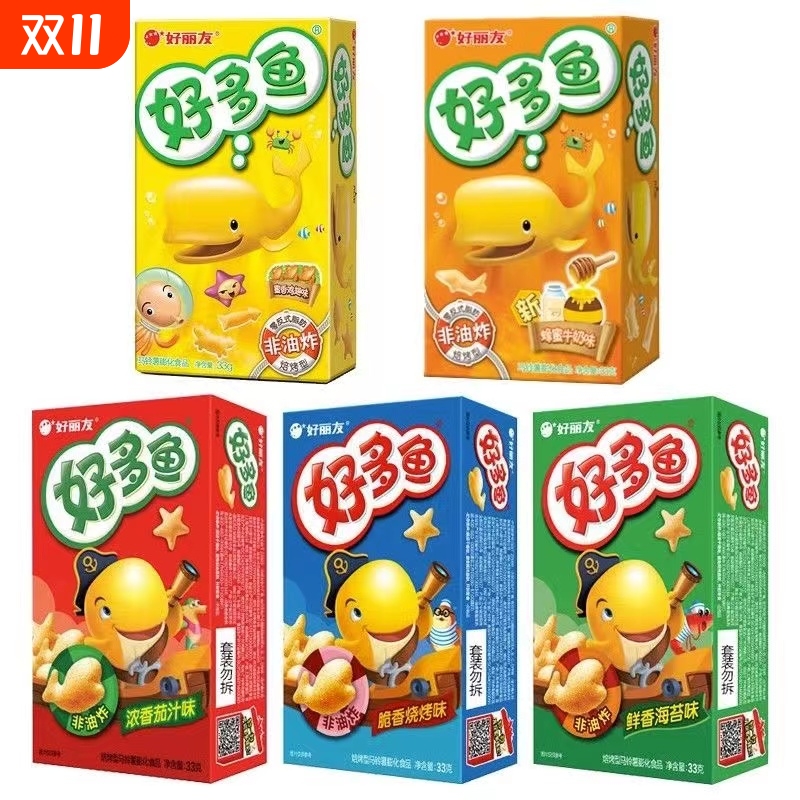 好丽友好多鱼零食非油炸薯片饼干小朋友儿童休闲小吃休闲食品盒装