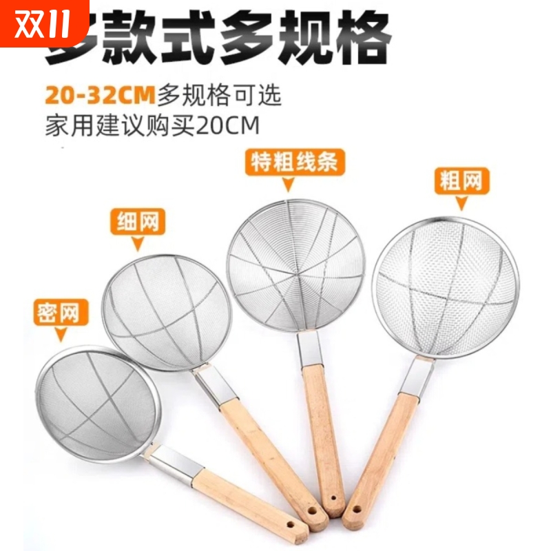 漏勺 304不锈钢捞勺加厚油炸过滤网筛漏网商用油盆漏厨房大号笊篱