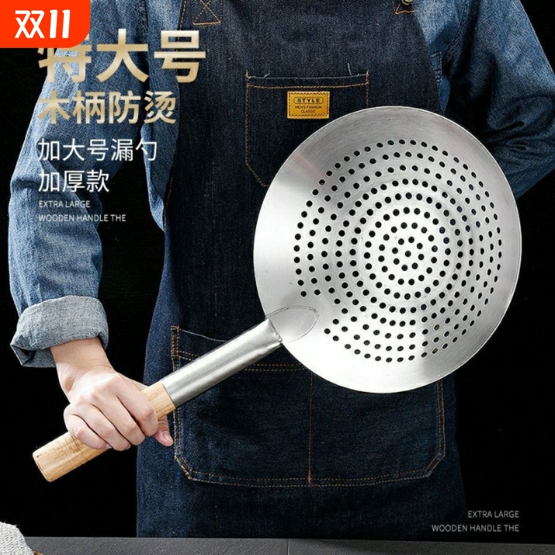 加厚不锈钢大号油鼓漏勺油炸滤油漏勺捞面勺商用加长款过滤网漏勺