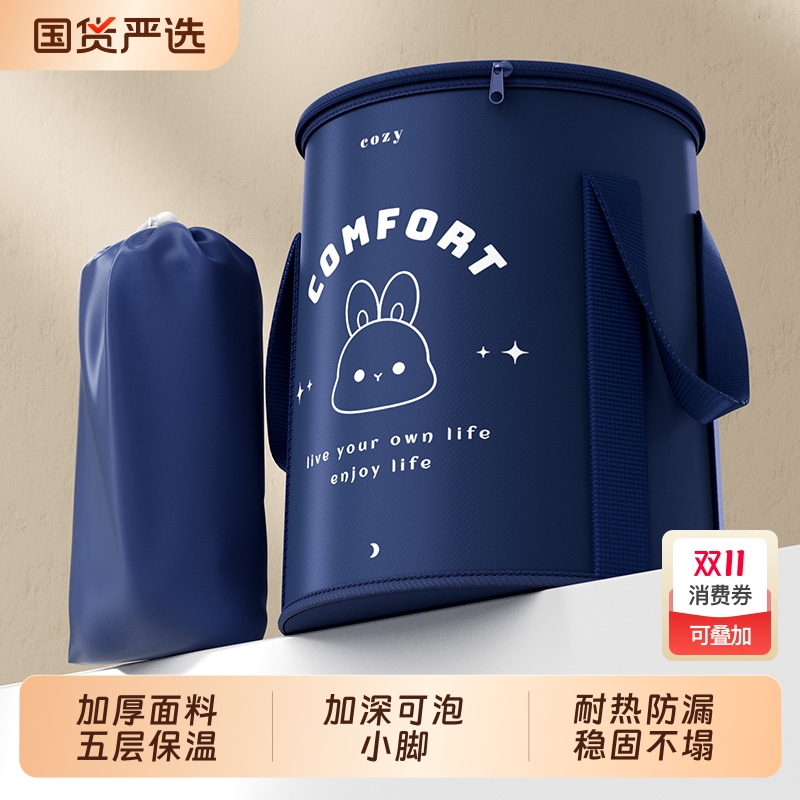 卡通折叠泡脚桶冬季保温加高过小腿洗脚桶家用宿舍便携手提洗脚袋