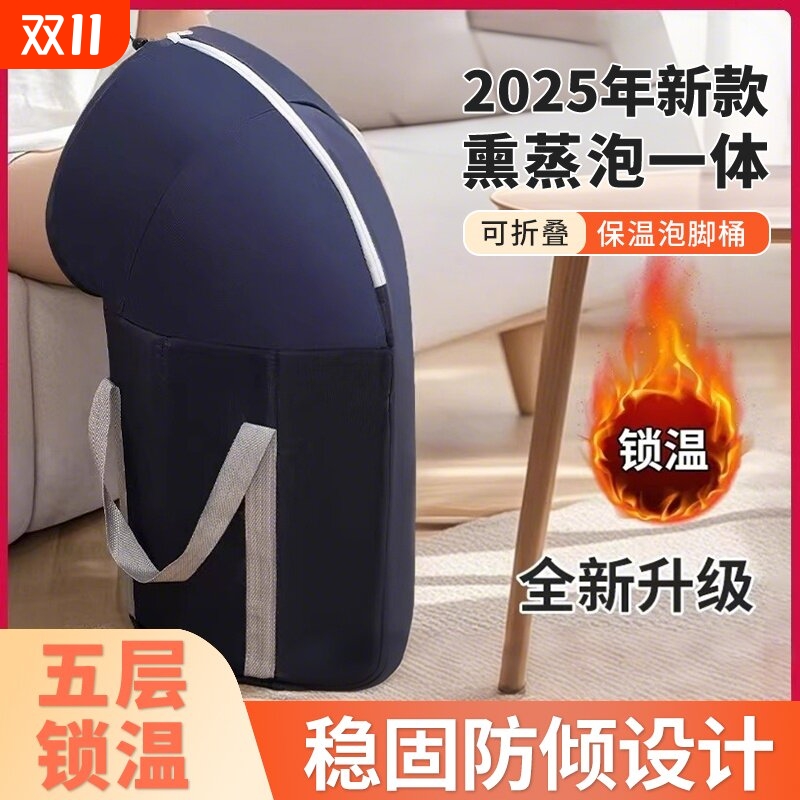 2025新款过膝加厚泡脚桶便携式家用保温可折叠足浴桶养生熏蒸小腿
