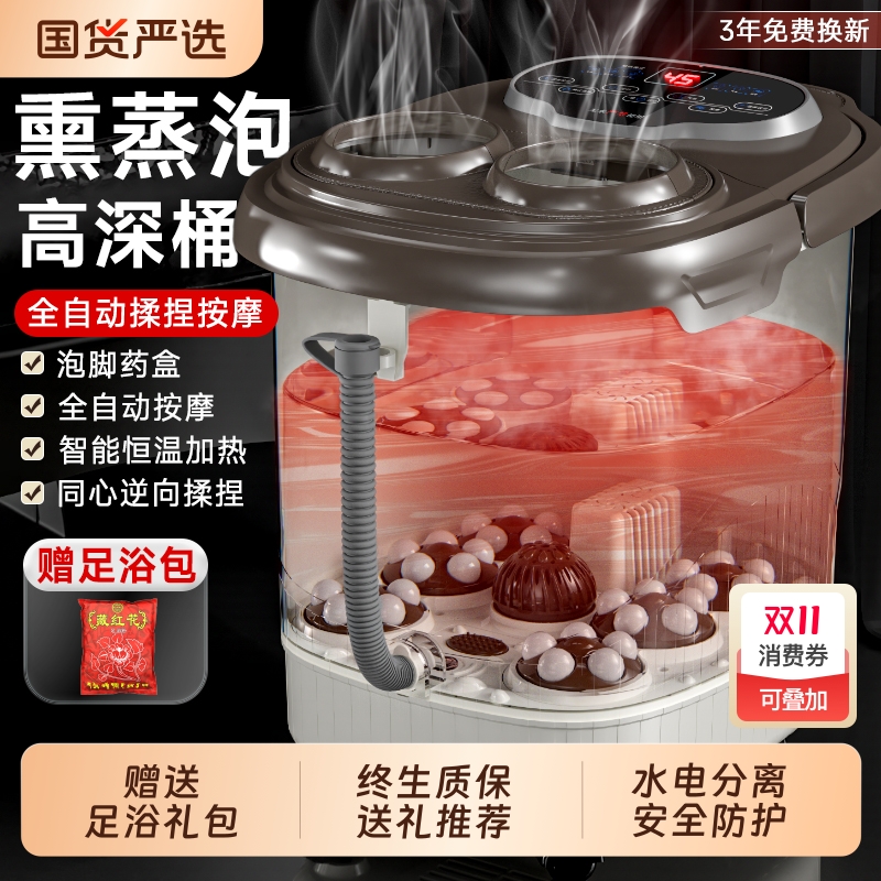 高深泡脚桶全自动电动按摩足浴盆加热家用恒温洗脚盆足浴器机小腿