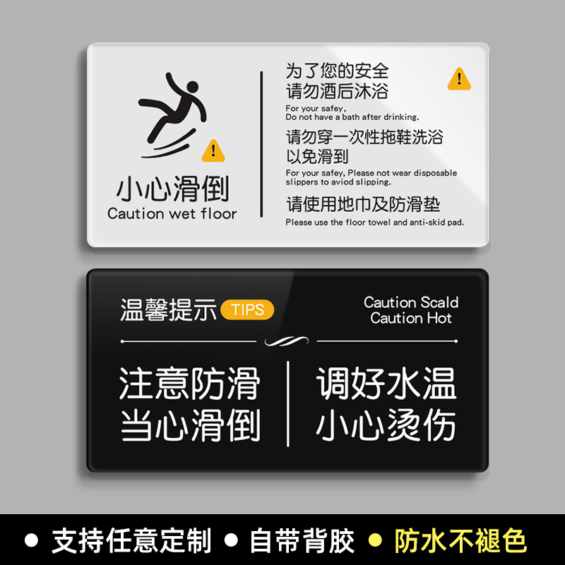 小心地滑提示牌小心台阶地贴纸防水警示牌当心碰头标识贴注意脚下楼梯