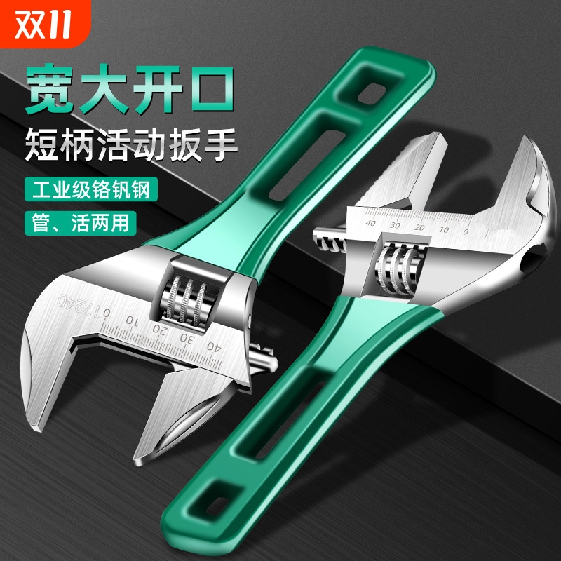大开口活动扳手万能短柄板手工具活口扳子多功能卫浴扳手管钳