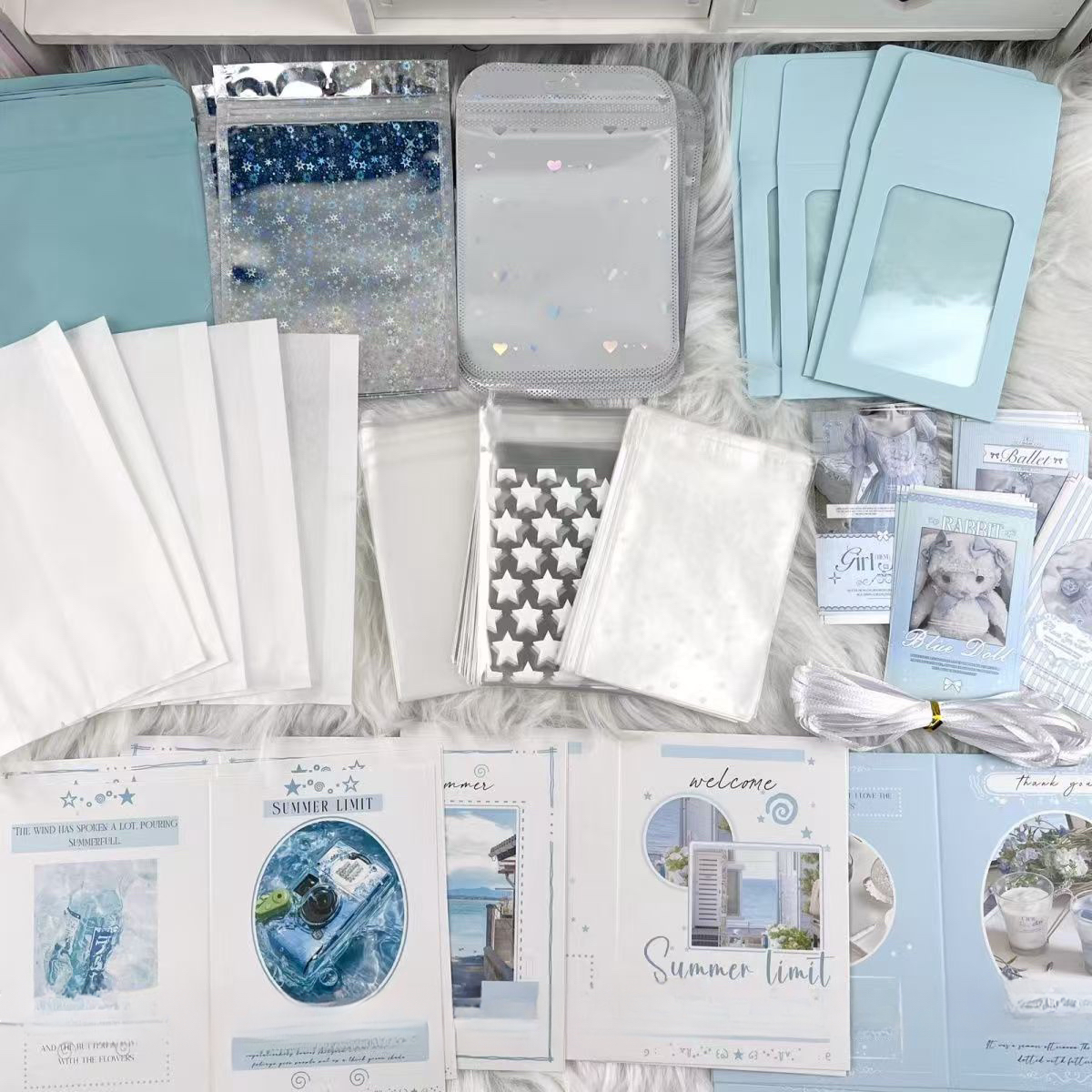 夏日蓝色diy出卡打包材料套装超值206件整套出卡打包材料小清新