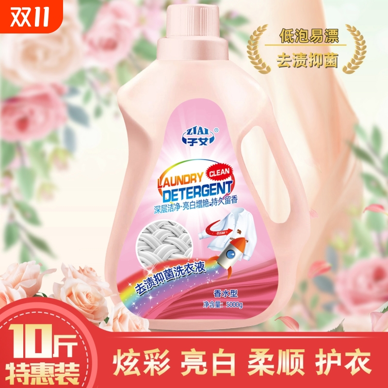 子艾洗衣液10斤装深层洁净去渍去污洗衣液5kg低泡易漂家用实惠装