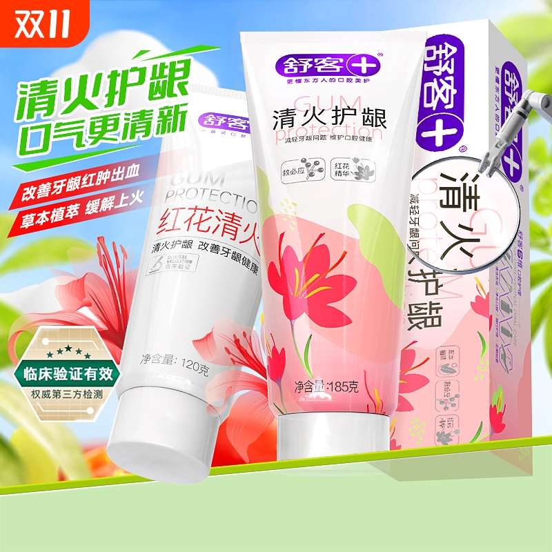 舒客舒克清火护龈红花牙膏牙龈成人护理薄荷不含氟牙齿口腔清热
