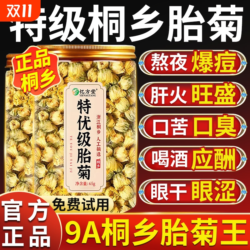 胎菊特级正品官方旗舰店去火清热天然菊花茶养生茶桐乡杭白菊贡菊