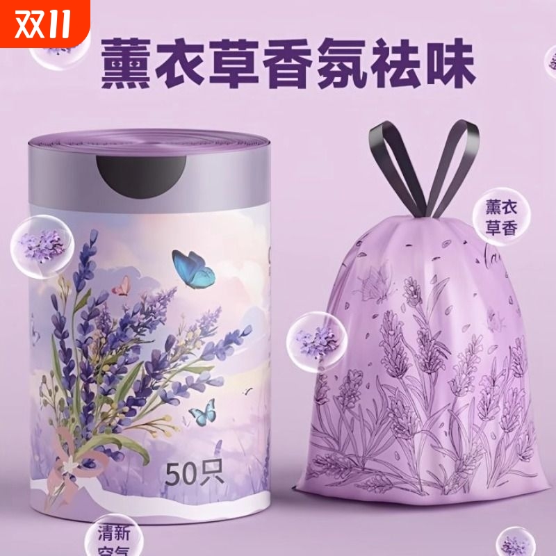 艾草垃圾袋薰衣草香氛驱蚊家用加厚手提式防蚊加大抽绳式厨房清香