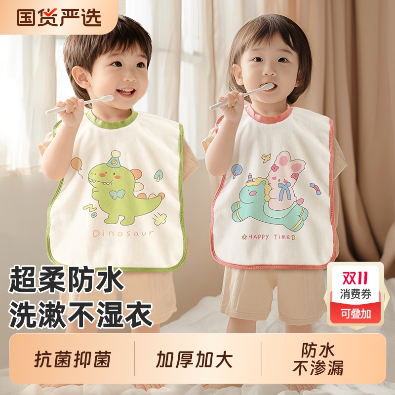 儿童洗漱巾围兜四季不湿衣多功能防水巾宝宝刷牙洗脸毛巾洗漱口巾