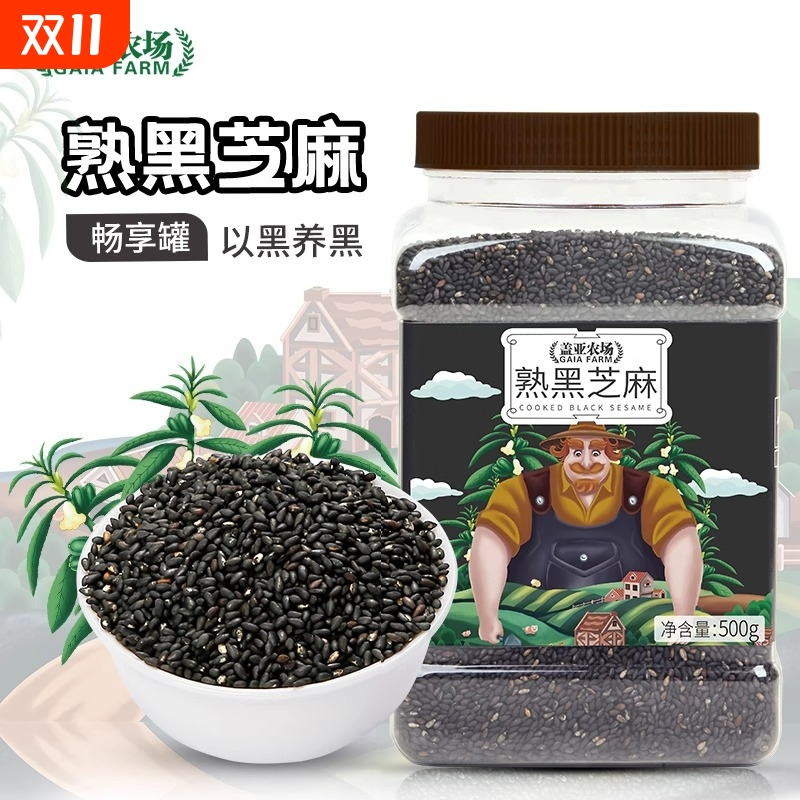 盖亚农场熟黑芝麻500g东北炒农家自产免洗即食烘焙黑芝麻五谷杂粮