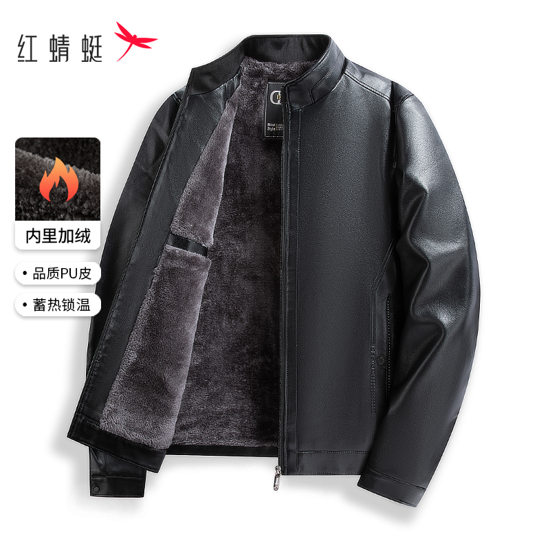 【烈儿宝贝直播间】红蜻蜓立领皮衣外套男冬季加绒加厚爸爸皮夹克