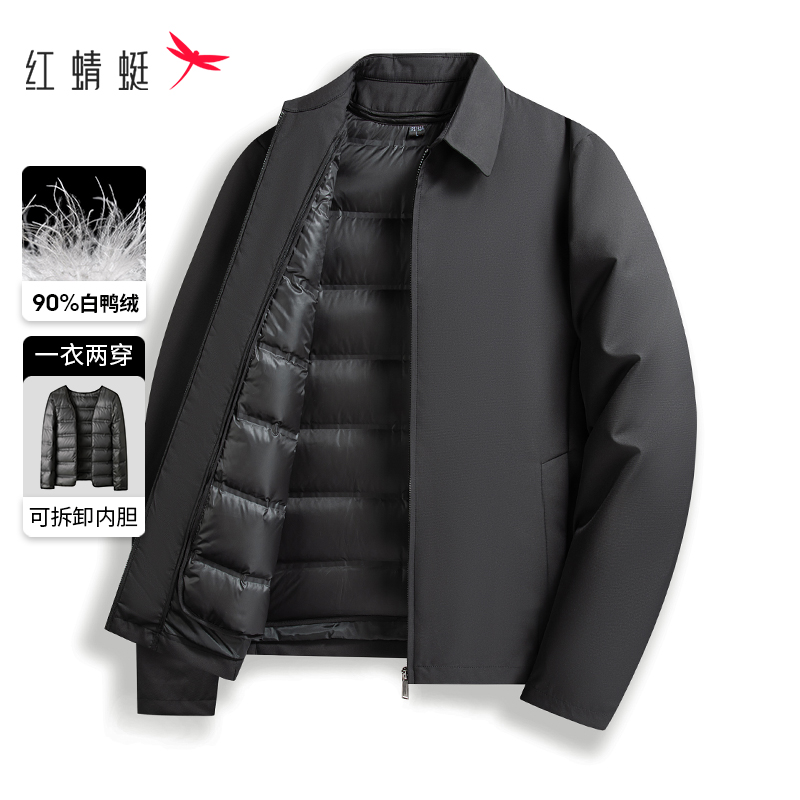 【烈儿宝贝直播间】红蜻蜓男士羽绒夹克冬季可拆内胆爸爸翻领外套