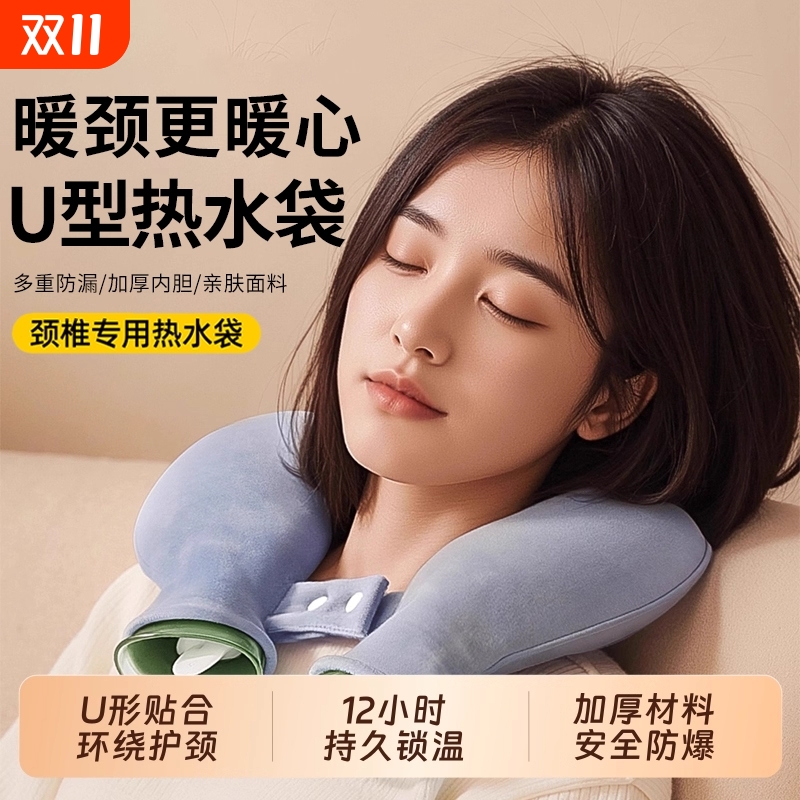热水袋U型颈椎热敷注水灌水肩颈头部暖宝宝防爆加厚挂脖围脖枕头