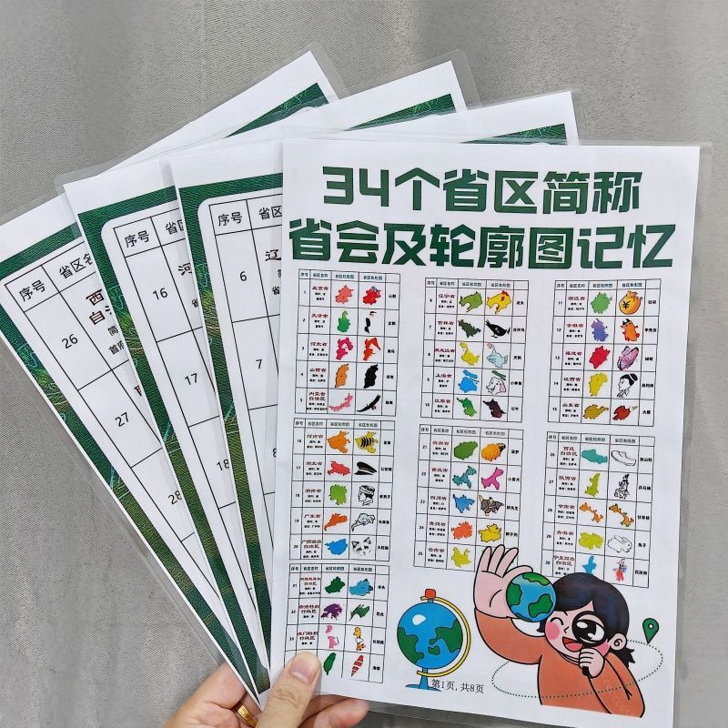 34个省区简称省会及轮廓图记忆初中生小学生地理常识记事本