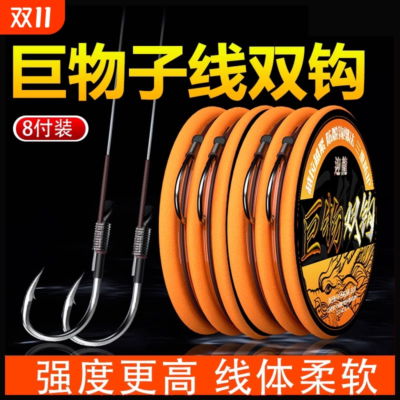 巨物子线双钩歪嘴鲢鳙草鱼青鱼钩伊势尼绑好大物成品无结溪流