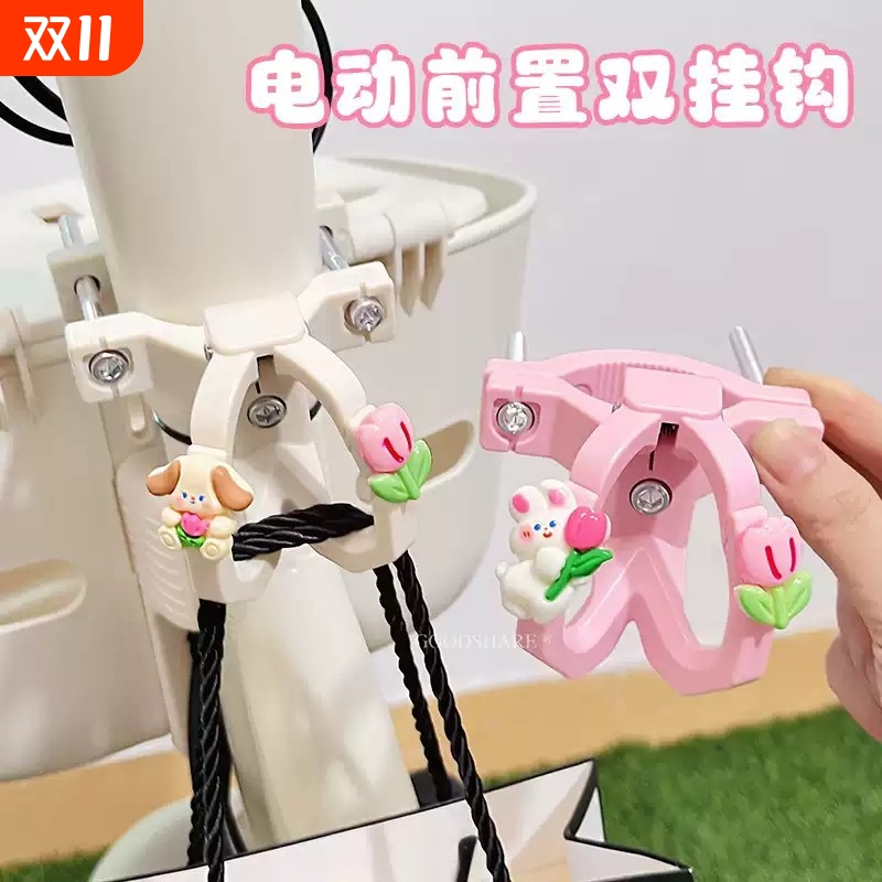 电动车前置双挂钩开闭式防脱钩可爱卡通电瓶车外卖挂物钩挂重物