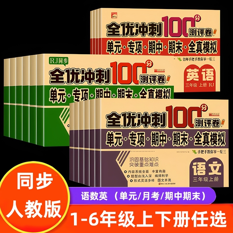 全优冲刺一百分测评卷人教版语文数学英语测试卷全套一二三四五六年级