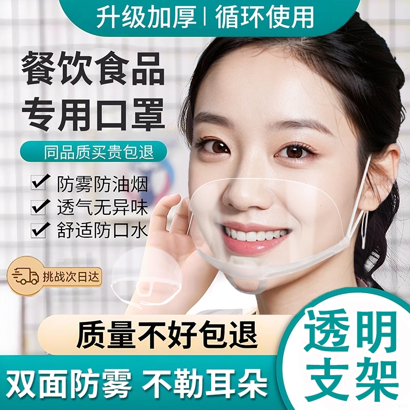 餐饮透明口罩厨师专用食品物卫生塑料面罩加长防油烟防护加宽薄款