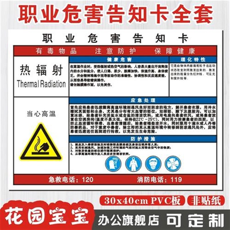 新款热辐射 职业病危害告知卡 当心化工物质提示标志牌 警示标识