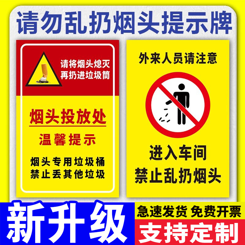 请勿乱扔烟头标识牌公司工厂车间烟头投放处吸烟区严禁乱扔烟头温馨提