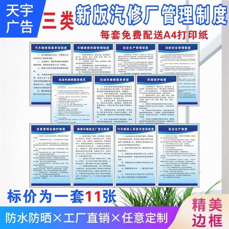 二类三类汽车修理厂安全管理规章制度牌维修质量承诺档案生产环境