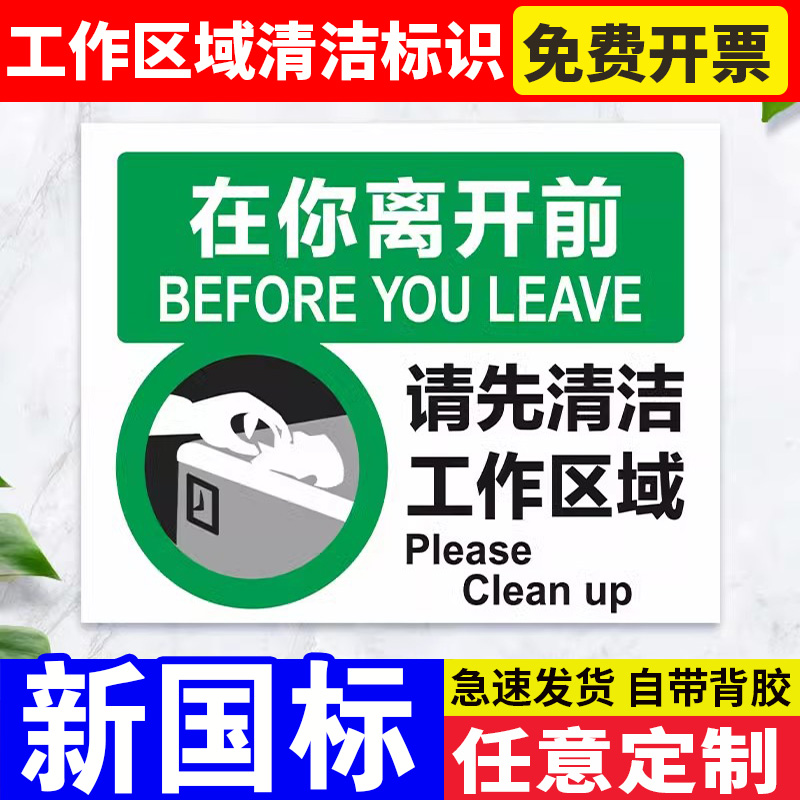 在你离开前请先清洁工作区域温馨提示牌保持桌面清洁标识牌仓库生产车