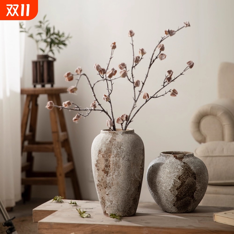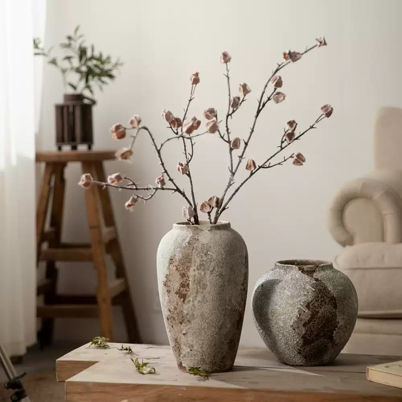 侘寂风复古粗陶瓷桌面花瓶客厅插干花民宿茶室新中式玄关禅意摆件