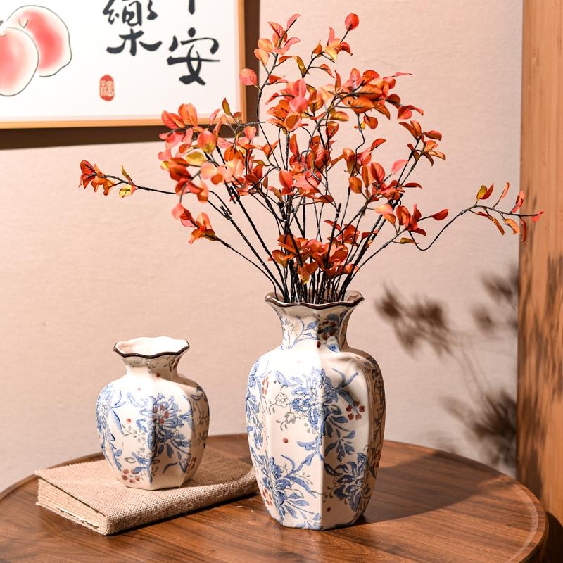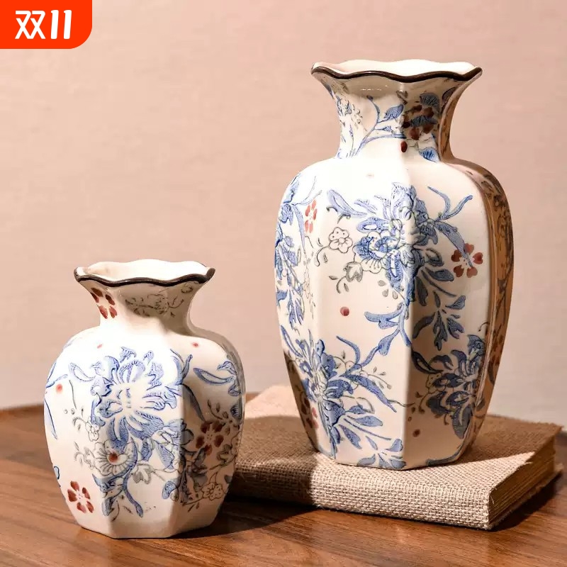 新中式中古青花瓷复古花瓶陶瓷鲜花插花客厅装饰品摆件花器电视柜