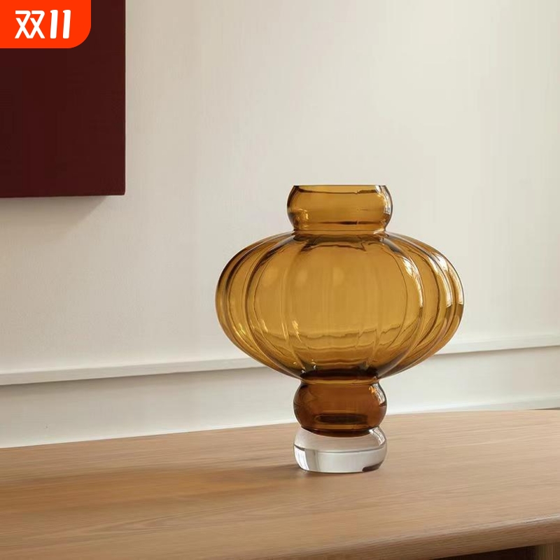 新中式家居灯笼型玻璃花瓶现代样板间装饰品书柜客